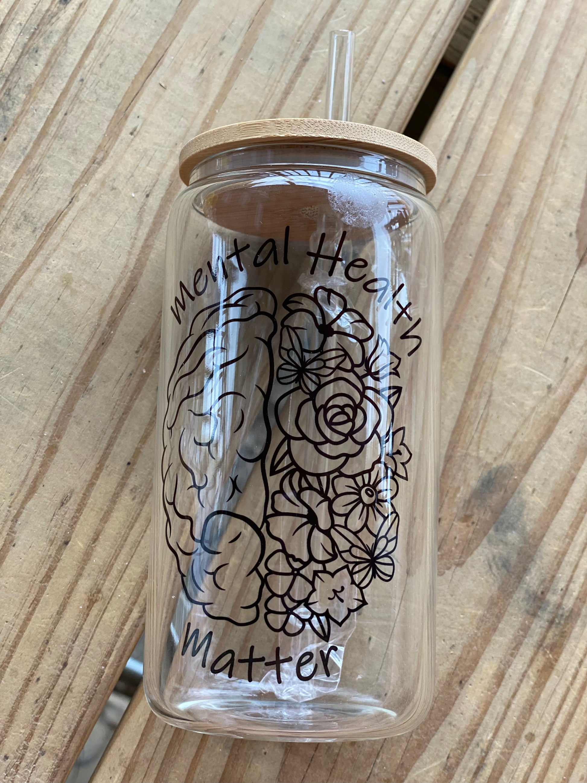 16oz Glass tumbler with bamboo lid and straw