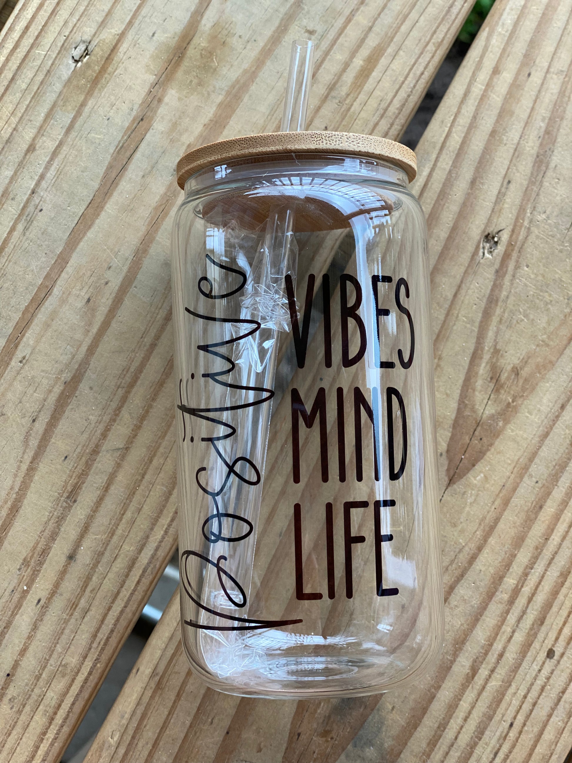 16oz Glass tumbler with bamboo lid and straw