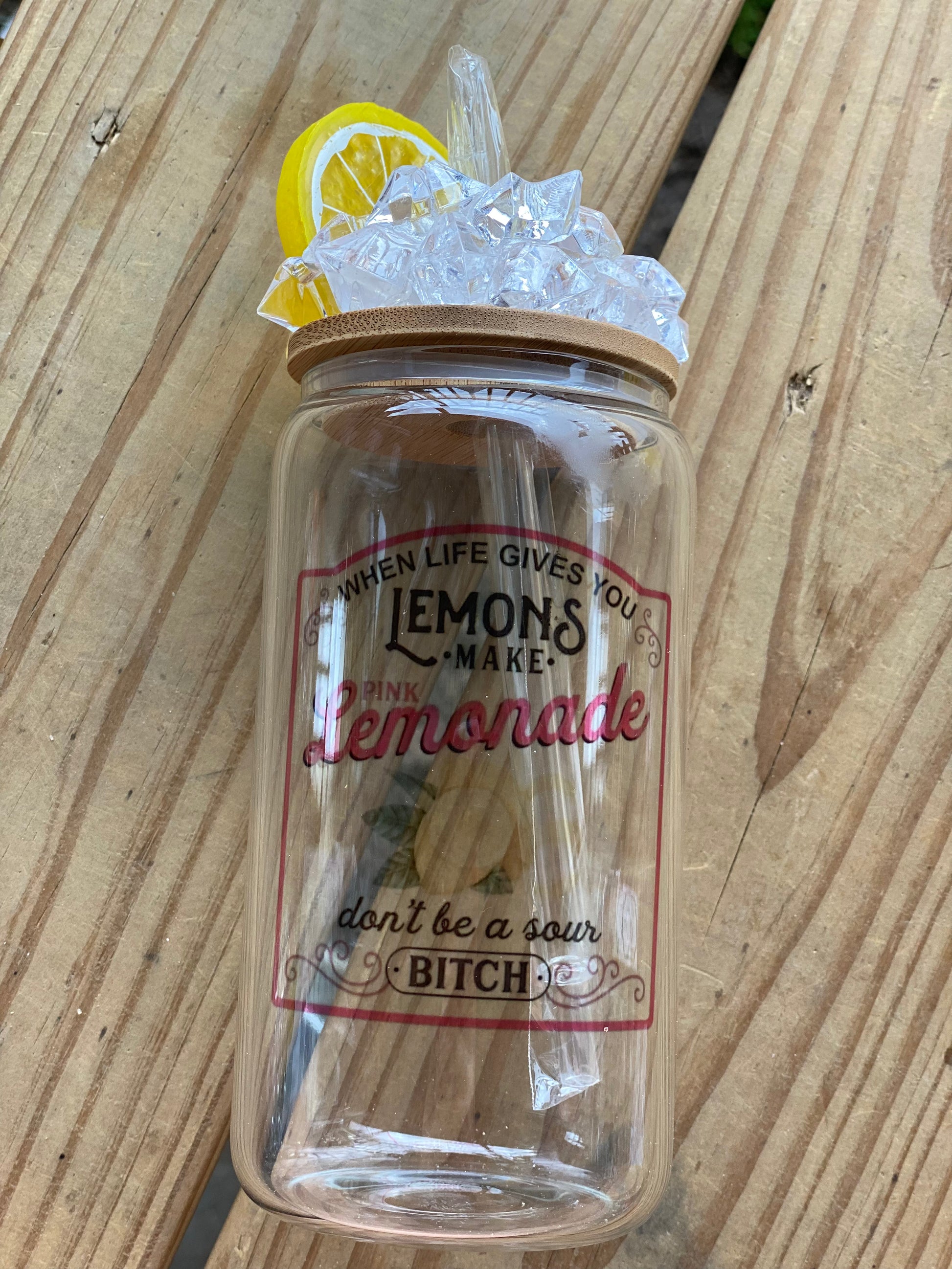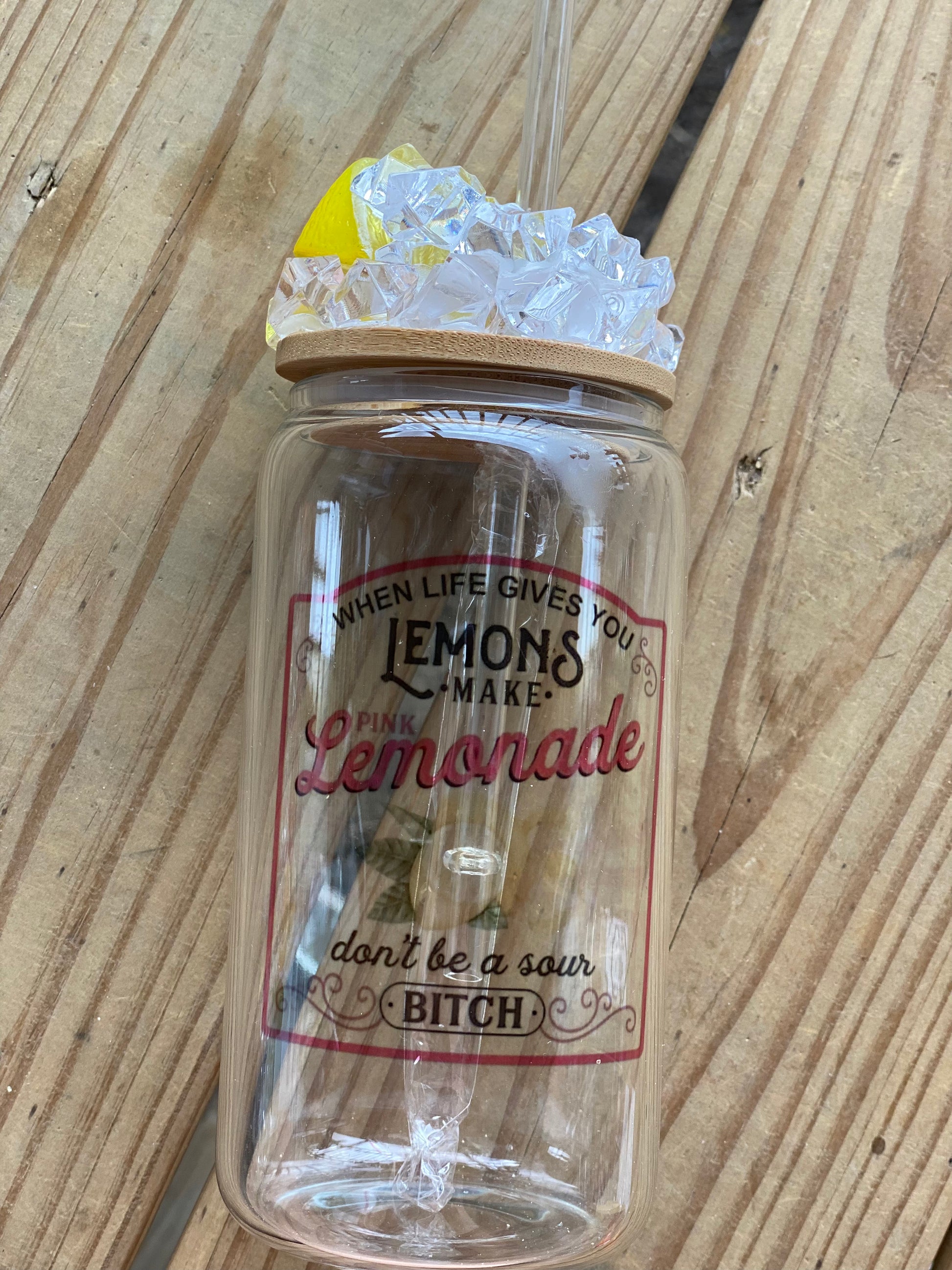 16oz Glass tumbler with bamboo lid and straw