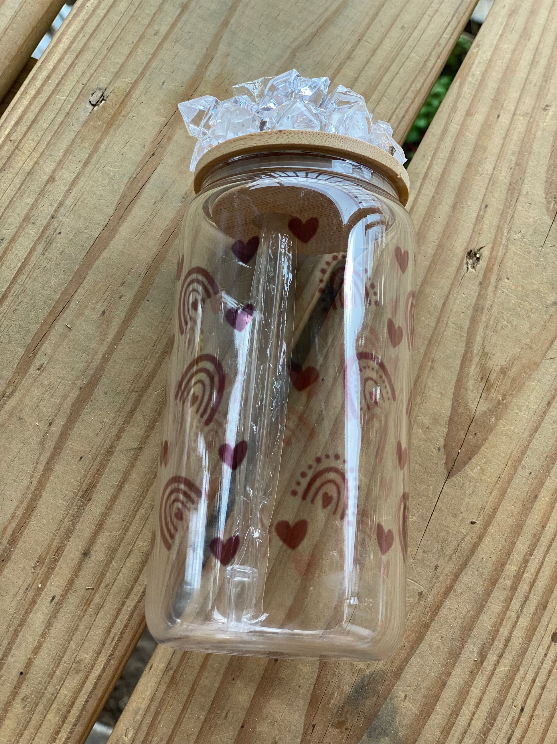 16oz Glass tumbler with bamboo lid and straw